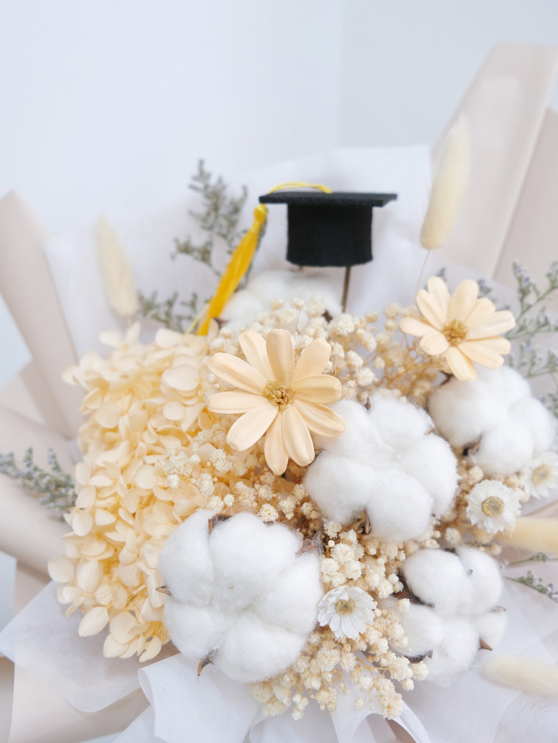 木棉花x永生繡球花束 - 淺橙色 | Cotton Flower x Preserved Hydrangeas Bouquet - Light Orange